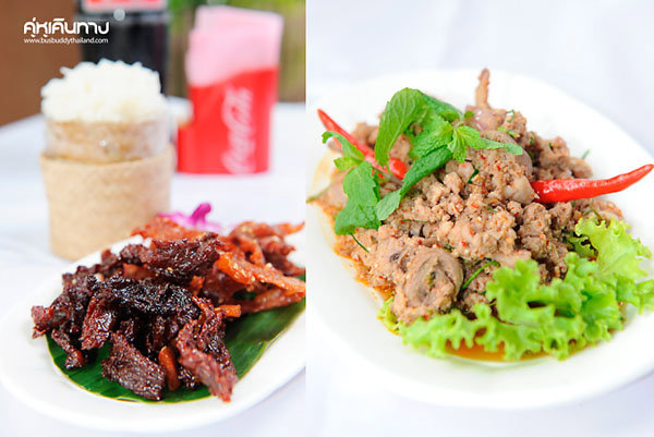 สำหรับคนที่ชื่นชอบการรับประทานปลาที่นี่เค้าก็มีเมนู ปลานิลและปลาทับทิมเผา เสิร์ฟมาพร้อมกับน้ำจิ้มรสเด็ด และผักสด ตบท้ายด้วยของหวานอย่าง ทับทิมกรอบกะทิสด รสชาติหวานกำลังดี เมนูอาหารของร้านรสชาติจะไม่เน้นเป็นอีสานมากจนเกินไป ออกไปทางภาคกลางมากกว่า เหมาะมากสำหรับนักท่องเที่ยวที่ไม่ค่อยมีความชำนาญในด้านอาหารอีสาน แต่ในเรื่องของรสชาติรับรองว่าอร่อยทุกเมนู ยิ่งถ้าได้รับประทานคู่กับเครื่องดื่มโค้กแล้วหละก็อร่อยแซบแบบโดนใจจริงๆ