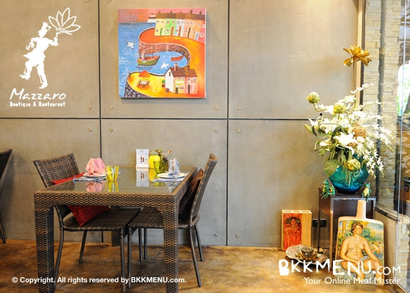 หลายต่อหลายคนคงอดห่วงใยกับวิกฤตน้ำท่วมในหลายๆ จังหวัดไม่ได้ ส่วนคนกรุงฯ ที่อยู่ในพื้นที่เส่ียง ยังไงก็เตรียมตัวให้พร้อมรับมือกันด้วยนะคะ เอาเป็นว่าตอนนี้พักจากเรื่องเครียด แล้วออกไปรีแลกซ์ด้วยของอร่อย ๆ กับเราดีกว่าค่ะ เป้าหมายครั้งนี้ก็คือ Mazzaro Boutique & Restaurant แถวเจริญกรุง ที่นี่เป็นทั้งร้านอาหารและร้านเสื้อผ้าในที่แห่งเดียวกัน สร้างสรรค์บรรยากาศน่านั่งแบบ Contemporary Style โซนด้านหน้าสามารถมองเห็นสีสันความเป็นไปของท้องถนนย่านบางรัก ผนังปูนเปลือยประดับด้วยผลงานศิลปะ รวมทั้งของตกแต่งบ้านเก๋ๆ ซึ่งออกแบบโดยเจ้าของร้านเอง