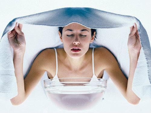 จากนั้น ใช้ผ้าขนหนูผืนเล็กๆ แช่ลงไปในน้ำร้อนนั้น แล้วเอานำขึ้นมาวางไว้บนใบหน้า (อย่าลืมตรวจสอบก่อนว่าร้อนเกินไปหรือเปล่า)