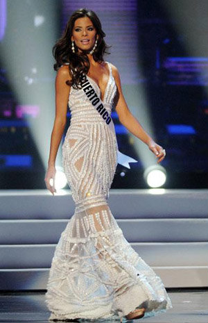เธอมากับเดรสซีทรูที่มีการจัดวางลวดลายและปักคริสตัลอย่างพิธีพิถัน ทำให้เดรสชุดนี้ของสาวงามจากเปอร์โต ดูโดดเด่นและน่าจับตามอง หลายๆคนพยายามส่องกล้องทางไกลว่าเธอใส่กกน.หรือไม่? เอ๊ะ! ถ้าใส่ทำไมมองไม่เห็น? แล้วเธอจะคันหูไหม? หลากหลายความสนใจเริ่มมีขึ้น ทันทีที่เห็นเดรสสุดสวยชุดนี้
