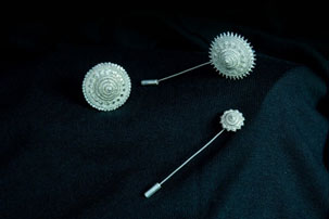 ผลงานคอลเลคชั่น เข็มกลัดติดเสื้อแบบร่วมสมัย 3 รูปแบบนี้ได้แรงบันดาลใจจากการนำเอาเสน่ห์ของตะเกาโบราณ หนึ่งในศิลปะการทำเครื่องเงินของจังหวัดที่เป็นลวดลายเลียนแบบ ดอกตะเกา ที่คงอัตลักษณ์ของเครื่องเงินบ้านโชค จังหวัดสุรินทร์ได้เป็นอย่างดี สร้างสรรค์ขึ้นจาก กลุ่มหัตถกรรมศิลปาชีพอีสานใต้ จังหวัดสุรินทร์