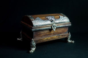 ผลงานคอลเลคชั่นนี้ เป็นกล่องไม้ประดับโลหะเงินดุนลายและถมเงิน 3 ขนาด ได้รับแรงบันดาลใจจากสัตว์ในวรรณคดีไทย “ปักษาสิงห์” สัตว์ป่าหิมพานต์ที่มีส่วนหัวเป็นนก ลำตัวเป็นสิงห์ ที่เชื่อว่าเป็นตัวแทนผู้ถือครองอาณาจักรอัญมณี ดูแลสมบัติให้แก่เจ้าของ โดยกล่องไม้ประดับนี้สร้างสรรค์จาก ร้านบุ ดุน โลหะ จังหวัดนครศรีธรรมราช ใช้การผสมผสานเทคนิคแกะสลักดุน และการถมเงินซึ่งเป็นเอกลักษณ์ของจังหวัด
