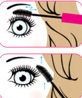 • ปัดมาสคาร่าในลักษณะปัดขึ้นแบบซิกแซ็ก ตั้งแต่โคนจรดปลายขนตา