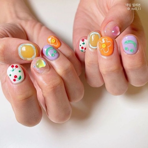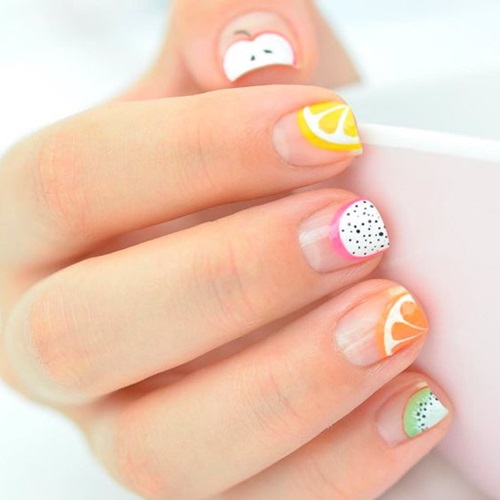 โดยสาวๆ สามารถเลือกทำผลไม้อะไรก็ได้ แต่ถ้าอยากให้เข้ากับซัมเมอร์ก็ควรเลือกผลไม้สดชื่นๆ หรือผลไม้ทรอปิคอลหน่อยนะคะ เช่น แตงโม, สับปะรด, เลมอน, ส้ม, สตรอว์เบอรี่, เชอร์รี่, มะม่วง, มะพร้าว เป็นต้น เน้นโทนสีสันสดใส ให้เล็บเด่นทุกอิริยาบทไปเลยจ้า