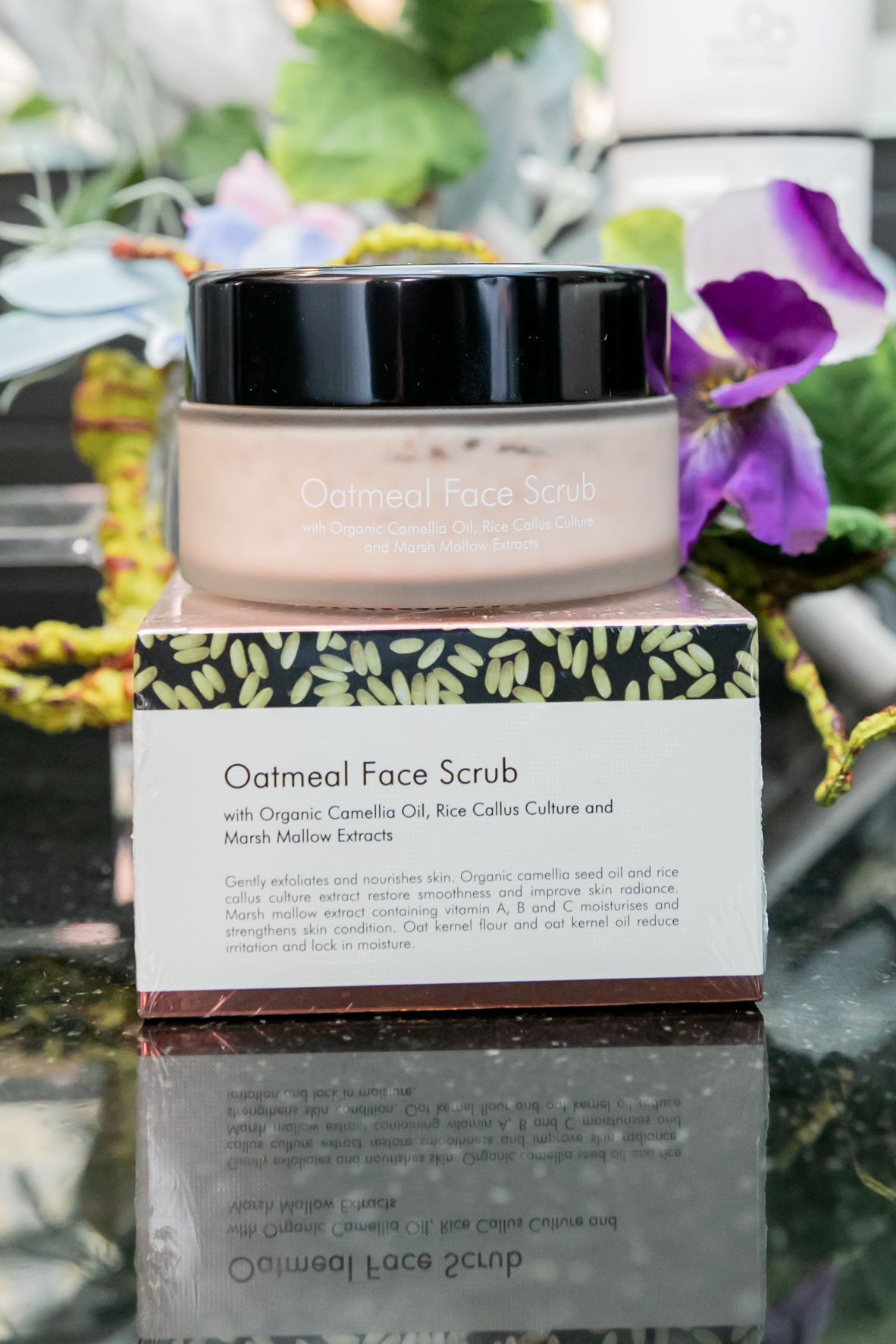 ‘โอ๊ตมีล เฟซ สครับ’ (Oatmeal Face Scrub) ขนาด 100 กรัม ราคา 1,200 บาท สครับสำหรับผิวหน้า สูตรอ่อนโยน ด้วยเม็ดสครับเนื้อละเอียดจากธรรมชาติอย่าง ข้าวโอ๊ต (Oatmeal) และเมล็ดผลแอพพริคอท (Apricot seed) ช่วยกระตุ้นการผลัดเซลล์ผิว พร้อมมอบคุณค่าการบำรุงด้วยสารสกัดจากดอกมาชเมลโล่ (Marsh Mallow) และใบบัวบก (Centella) อุดมด้วยวิตามินเอ, บี และซี ช่วยฟื้นฟูและเสริมสร้างความแข็งแรงให้ผิว เผยผิวเนียนนุ่ม กระจ่างใสอย่างเป็นธรรมชาติ
