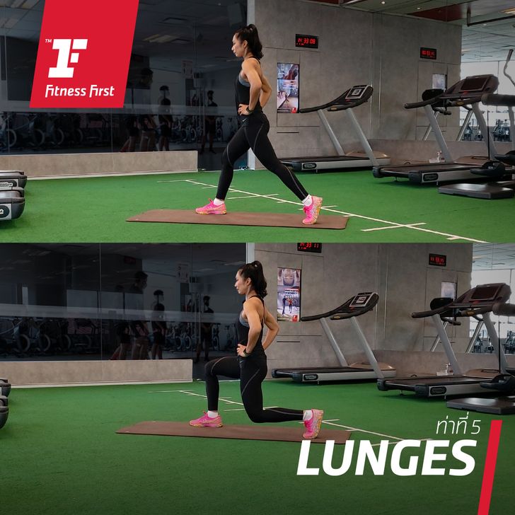 - ค่อยๆ ย่อเข่า โดยกดหัวเข่าด้านหลังลงเกือบถึงพื้นแล้วดันตัวขึ้น ถ่ายน้ำหนักให้ลงไปที่ขาทั้ง 2 ข้างให้ออกแรงพอๆ กัน ย่อและยืดไปเรื่อยๆ ในแนวดิ่ง ไม่พับตัว ไม่โน้มตัวไปข้างหน้า ทำซ้ำ 20-25 ครั้งเท่ากับ 1 เซ็ต ฝึกประมาณ 3-5 เซ็ต