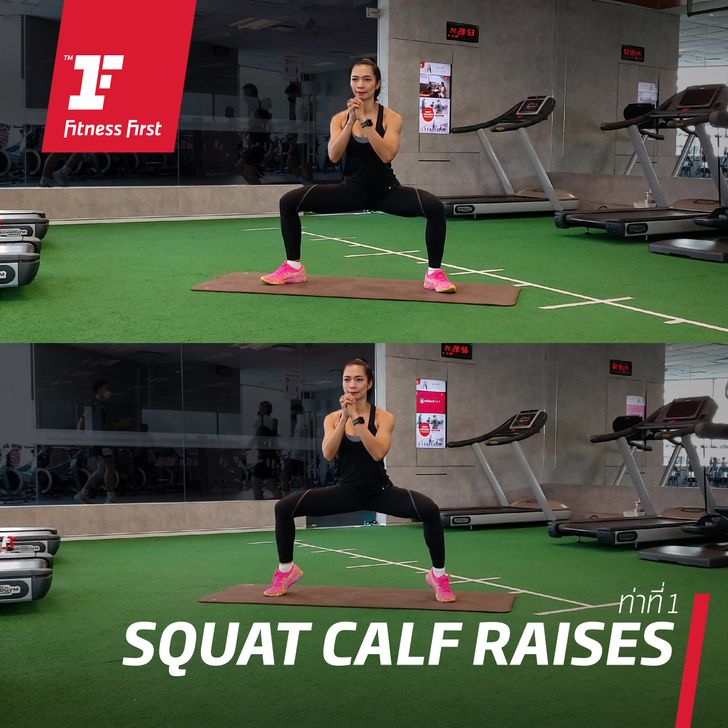 - ยกส้นเท้าขึ้นและลงสลับไปเรื่อย 20-25 ครั้งเท่ากับ 1 เซ็ต ฝึกประมาณ 3-5 เซ็ต