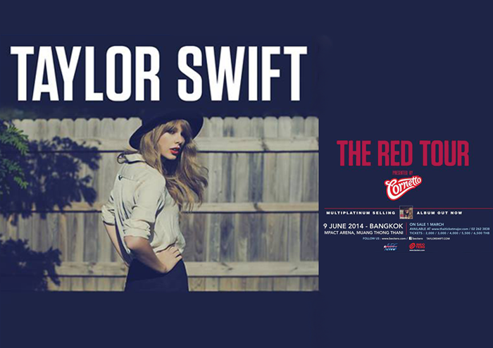 ผังที่นั่งคอนเสิร์ตสุดยิ่งใหญ่แห่งปีที่คอแฟนเพลงสากลรอคอยมานานประกาศออกมาอย่างเป็นทางการแล้วค่ะ สำหรับ Taylor Swift The Red Tour Presented by Cornetto Live in Bangkok ที่ Impact Arena เมืองทองธานี ในวันที่ 9 มิถุนายน 2557 เปิดขายบัตรวันที่ 1 มีนาคม 2557 วันแรกที่ Thaiticketmajor บัตรราคา 2,000/3,000/5,500/6,500 บาท (ราคา 4000 หายไปไหน?)