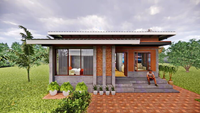 แบบบ้านชั้นเดียวสไตล์โมเดิร์นลอฟท์ หลังเล็กกะทัดรัด สวย ดิบ เท่ ด้วยผนังปูนเปลือย และอิฐโชว์แนว 2 ห้องนอน 1 ห้องน้ำ