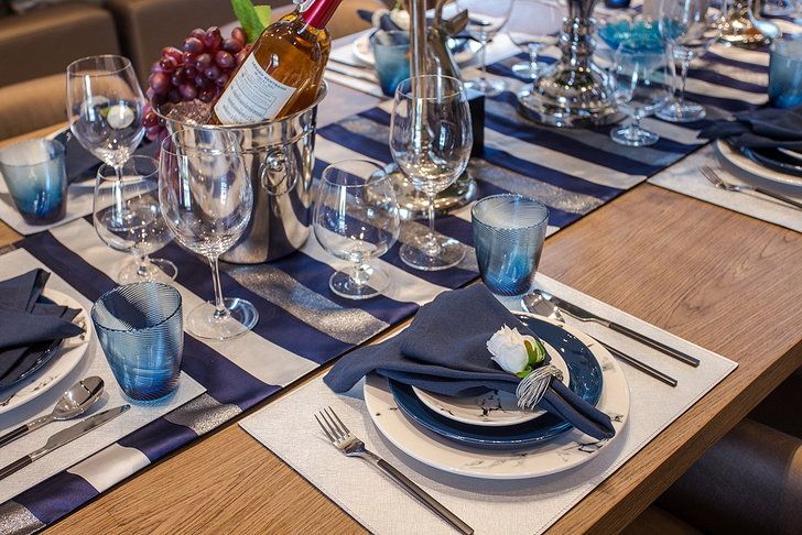 เครื่องถ้วยชามดีไซน์สวย จาน ชาม และชุดอุปกรณ์รับประทานอาหารที่สวยงามมีส่วนช่วยสร้างบรรยากาศแห่งการรับประทานอาหารให้มีรสชาติดีมากยิ่งขึ้น ลองเลือกจับคู่ภาชนะที่มีโทนสีเป็นเซ็ตเดียวกัน เรียงลำดับจากจานใบใหญ่ไปไซส์เล็กที่สุด ก่อนจะวางด้านบนด้วยผ้าเช็ดปากสีสวยที่พับไว้อย่างสวยงาม บริเวณด้านข้างจัดเป็นเซ็ตอุปกรณ์ช้อนส้อมและมีดที่ต้องใช้ในการรับประทานอาหารเข้าไว้ด้วยกัน ด้านขวามือลองเปลี่ยนจากแก้วน้ำสีใสเป็นสีที่เข้ากับชุดรับประทานอาหาร ก่อนจะวางทั้งหมดไว้บนผ้ารองจานที่มีลวดลายและโทนสีสวยงามเข้าชุดกัน ก็พร้อมเปลี่ยนบรรยากาศแห่งการรับประทานอาหารให้กลายเป็นมื้อสุดพิเศษที่น่าประทับใจ