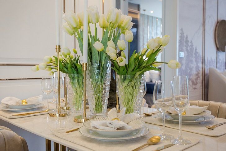ประดับความสวยงามด้วยแจกันดอกไม้ธรรมชาติ สีสันจากธรรมชาติมีส่วนช่วยสร้างบรรยากาศให้มื้ออาหารเต็มไปด้วยความสดชื่นและรื่นรมย์มากยิ่งขึ้น เช่นเดียวกับการประดับบริเวณโต๊ะอาหารด้วยแจกันดอกไม้สีสวยหรือพืชพรรณไม้ที่มีรูปฟอร์มของใบสวยงาม เพื่อเพิ่มความเป็นธรรมชาติให้บรรยากาศแห่งการรับประทานอาหารดูสดใส ชวนผ่อนคลาย และพร้อมสำหรับการเริ่มต้นวันใหม่ได้ทุกวัน