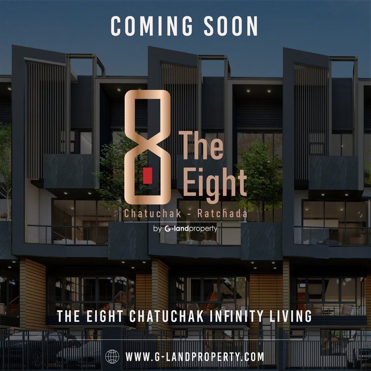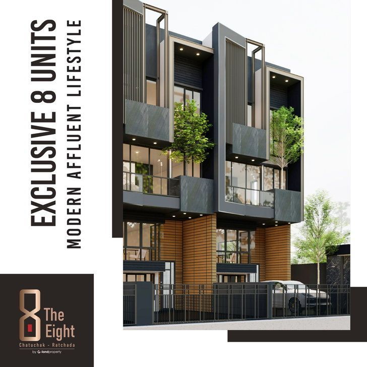 บริษัท จี แลนด์ พร็อพเพอร์ตี้ จำกัด แนะนำโครงการใหม่ THE EIGHT (Chatuchak - Ratchada) (ดิ เอท จตุจักร – รัชดา) บ้าน 3.5 ชั้น สไตล์โมเดิร์น Privacy Residence เอกสิทธิ์เพียง 8 ครอบครัวบนทำเล Extremely Rare ตอบโจทย์การอยู่อาศัยที่สมบูรณ์แบบ (Perfectionist Living) กับงานออกแบบที่ชาญฉลาด และประณีต ในทุกรายละเอียด ลงตัวกับการปรับเปลี่ยนฟังก์ชั่นภายในบ้านได้อย่าง ‘อิสระ’ พร้อมพื้นที่พักผ่อนที่คุณจะค้นพบคำตอบของคำว่า ‘ชีวิตส่วนตัว’ 3 ห้องนอน 4 ห้องน้ำ 2 ที่จอดรถ ห้องนั่งเล่น ห้องทานอาหาร Pantry และ Flexible Space บนชั้นลอย พื้นที่สำหรับเติมเต็มและต่อยอดงานอดิเรกทุกไลฟ์สไตล์