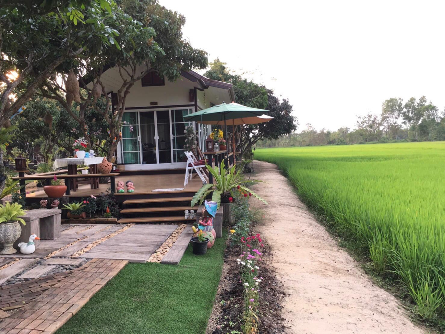 ชมภาพ “บ้านสวนริมทุ่งนา” พร้อมมุมพักผ่อนกลางแจ้ง มองเห็นวิวสุดร่มรื่นและเขียวขจี