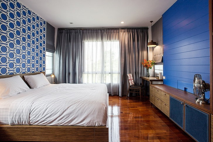 กำหนดโทนสีหลัก 60 % วิธีที่ง่ายที่สุดของการตกแต่งภายในบ้านคือ กำหนดให้มีโทนสีหลัก 60 % ของห้อง โดยเลือกใช้โทนสีที่เป็นกลางเพื่อนำโทนสีอื่นเข้ามาผสม ส่วนใหญ่แล้วเรามักเลือกใช้กับเพดาน ผนัง รวมไปถึงเฟอร์นิเจอร์ชิ้นใหญ่ๆ เฉกเช่นเดียวกับห้องนอนที่เลือกใช้โทนสีน้ำเงินมาเป็นโทนสีหลักทำให้ห้องนอนดูโดดเด่นได้อย่างลงตัว นอกจากนี้ยังมีห้องนั่งเล่นที่เลือกตกแต่งด้วยโทนสีขาวสะอาดตา ไม่ว่าจะเพดาน วอลล์เปเปอร์ รวมไปถึงเฟอร์นิเจอร์ชิ้นใหญ่อย่างโซฟาอีกด้วย เพื่อคุมโทนให้บรรยากาศของห้องเป็นไปในทางเดียวกัน
