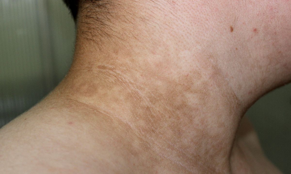 - ผิวหนังหนาขึ้นและมีสีคล้ำขึ้นขรุขระดูคล้ายผ้ากำมะหยี่