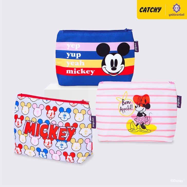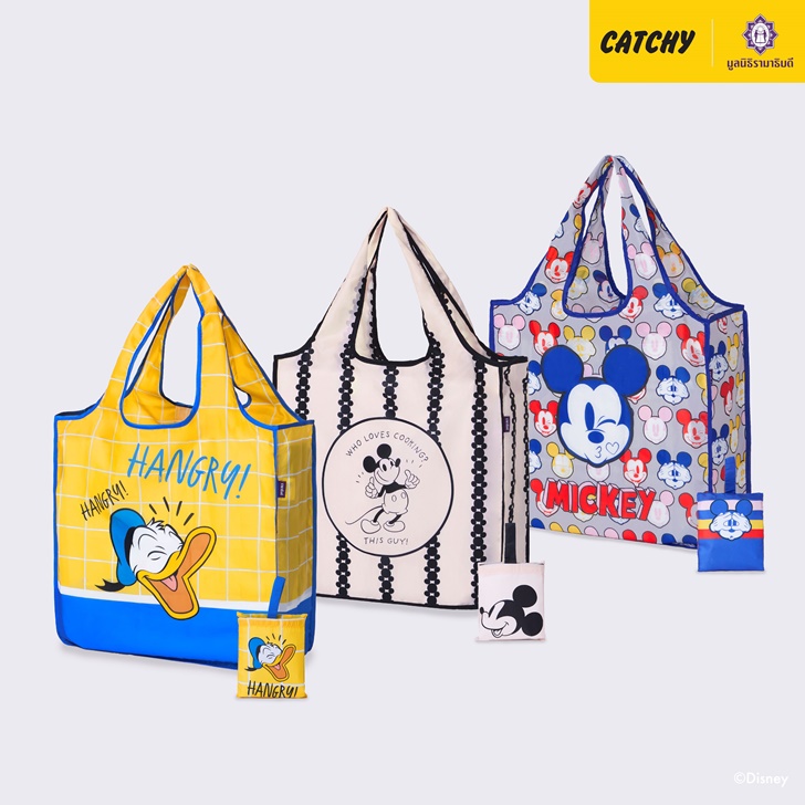 สำหรับของที่ระลึกการกุศล จาก CatchyXofficial คอลเลกชัน “Mickey Mouse & Friends” นี้ ดีไซน์ให้ตอบโจทย์ทุกเพศ ทุกวัย มีสินค้าหลากหลายให้เลือกสรร ไม่ว่าจะเป็น เครื่องแต่งกาย ได้แก่ เสื้อยืดทีเชิ้ต ใส่ง่าย นุ่มสบายจาก ผ้าฝ้ายธรรมชาติ 100% มี 4 ลายให้เลือก ทั้ง Mickey Mouse, Minnie Mouse, Donald Duck และ Pluto ราคา 250 บาท เสื้อฮาวาย ลาย Mickey Mouse ผ้าเนื้อนิ่ม ระบายอากาศได้ดี เหมาะกับหน้าร้อน สวมใส่ได้ทั้งชายและหญิง มี 2 สีดำและน้ำเงิน ราคา 379 บาท เสื้อสเวตเตอร์ ลาย Mickey Mouse ผ้า French Terry เนื้อดีไม่บาง หรือหนาจนเกินไป สวมใส่ กันหนาว กันแดด กันลมได้ มี 2 สี น้ำเงินและเทา ราคา 559 บาท เสื้อแจ็คเก็ต ลาย Mickey Mouse ผ้า Fleece เนื้อนิ่ม เอวและปลายแขนแบบจั๊ม มีฮู้ด ใส่ไปเที่ยว หรือสวมทับไปข้างนอกหรือใส่ไปทำงานก็ได้ ราคา 759 บาท ชุดนอนแบบเดรสกระโปรง ผ้าฝ้ายธรรมชาติ 100% ใส่สบายไม่ร้อน มี 2 ลาย ได้แก่ Mickey Mouse (สีครีม) และ Mickey & Minnie (สีฟ้า) ราคา 599 และชุดนอนแบบเสื้อกางเกง มี 1 ลาย ได้แก่ Mickey Mouse (สีเทา และชมพู) 729 บาท หมวกกลับด้าน สัมผัสนุ่ม เบาสบาย ไม่ร้อน ใช้ได้ทั้ง 2 ด้าน มี 2 ลาย Mickey Mouse (สีน้ำเงิน) และ Minnie Mouse (สีชมพู) ราคา 399 บาท และหมวก Cap ใส่สบาย ระบายอากาศดี ใช้สวมใส่ขณะเล่นกีฬา หรือใส่ลำลอง มี 2 ลาย Mickey Mouse (สีดำ) และ Minnie Mouse (สีชมพู) ราคา 329 บาท