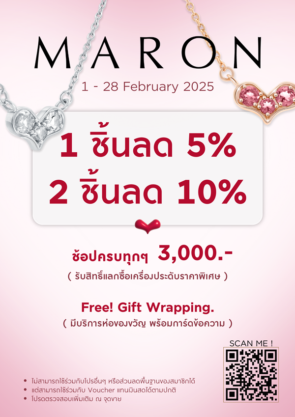 Maron Jewelry มาพร้อมกับ “Iconic Heart” ไอเท็มหัวใจที่ใช่ สำหรับวาเลนไทน์นี้ ต้อนรับเทศกาลแห่งความรัก ด้วยเครื่องประดับดีไซน์พิเศษ Iconic Heart ของขวัญที่สื่อถึงความรักได้ทุกมิติ ไม่ว่าจะเป็นคนโสดที่อยากเพิ่มเสน่ห์, คนคุยที่อยากขยับสถานะ, คู่รักที่อยากเติมความหวาน หรือคนอกหักที่อยาก move on จากสิ่งเดิมๆ ให้ Iconic Heart เป็นไอเท็มเสริมความรัก ตัวแทนของความรู้สึก และบอกรักในแบบของคุณ กับ Gemstones ที่ประกอบด้วย Pink Tourmaline – สื่อถึงรักแท้ที่บริสุทธิ์และจริงใจ, White Zircon – สะท้อนความรักที่อบอุ่นและอ่อนโยน, ใช้พลอยแท้ทุกเม็ด ผ่านการคัดคุณภาพโดยนักอัญมณี, คลีนพลังงานเรียบร้อย พร้อมใช้งานได้ทันที มาพร้อมกับตัวเรือนเงินแท้ ชุบทองคำแท้ และ ไม่มีส่วนผสมของนิกเกิล ใส่แล้วไม่แพ้ ไม่คัน ไม่ลอกติดผิว ที่ Maron Jewelry ชั้น M