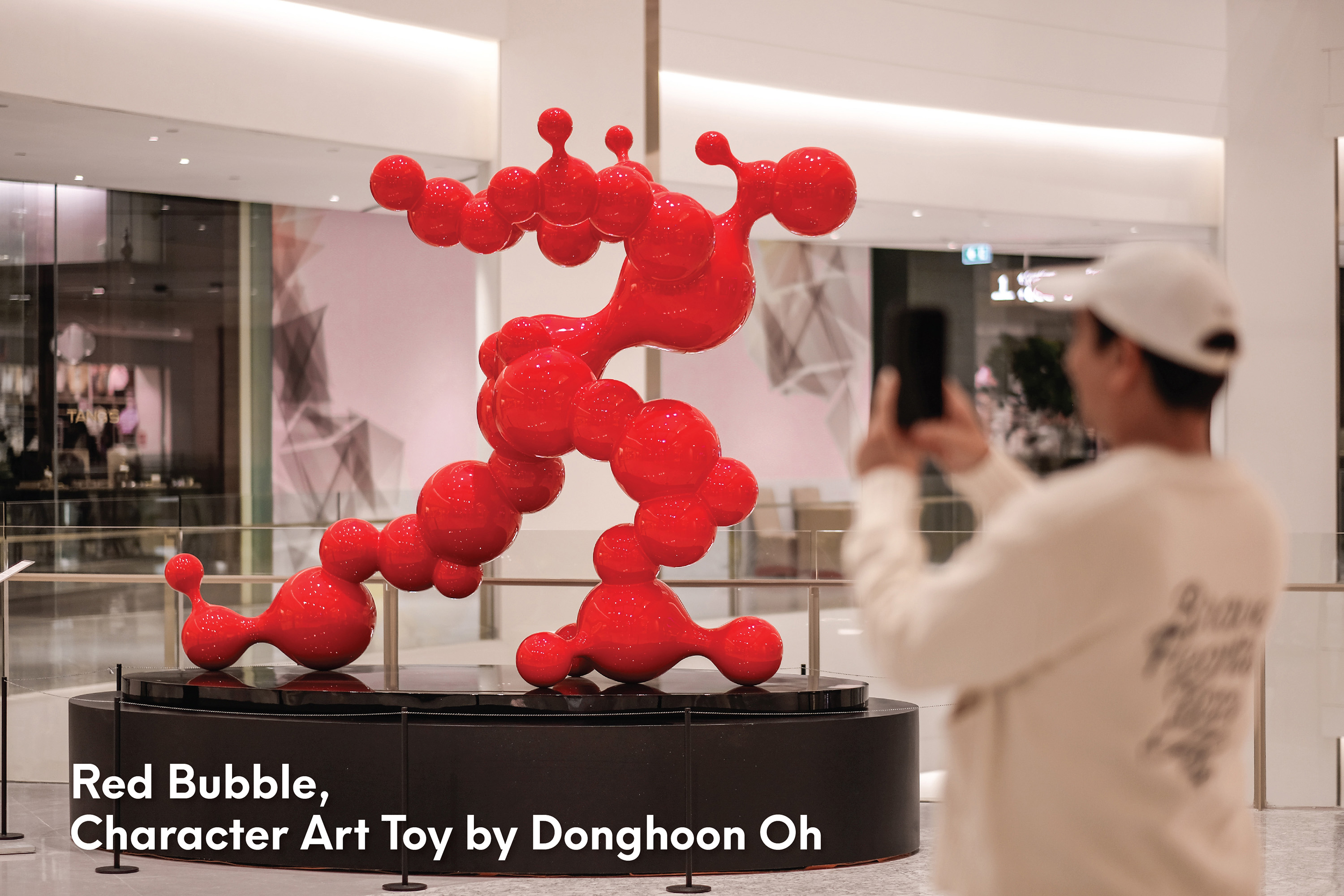 - Red Bubble ประติมากรรมร่วมสมัย โดย Donghoon Oh ศิลปินเกาหลีใต้ ถ่ายทอดรูปร่างคนโดยเล่นกับรูปทรงกลม ที่ได้รับแรงบันดาลใจจากฟองสบู่ที่เด็กๆ เป่าลอยอยู่ในอากาศได้ไม่นาน แล้วหายไป ราวกับความจริงและภาพลวงตาใกล้กันนิดเดียว