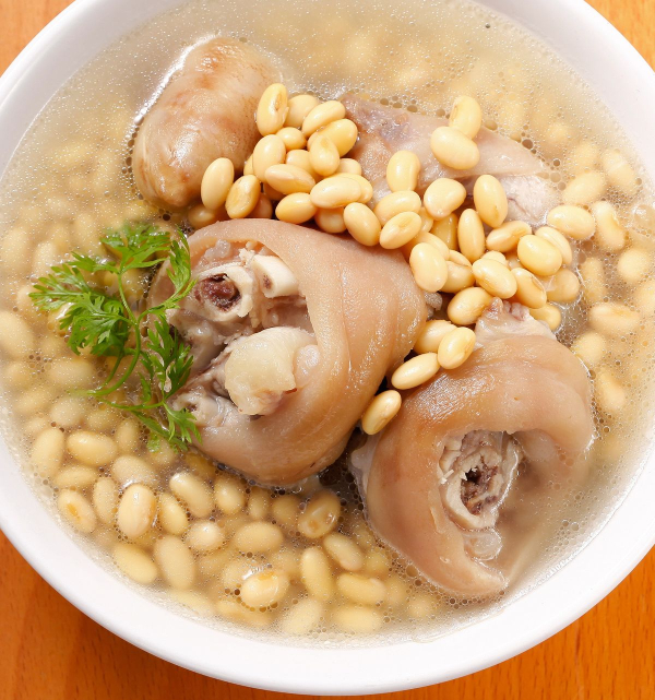 1. ขาหมูตุ๋นถั่วเหลือง – แคลเซียมแน่น คอลลาเจนสูง