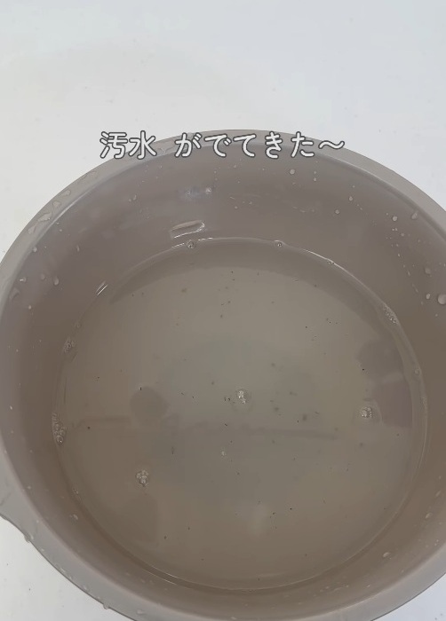 เมื่อยกตะแกรงขึ้นมาในขั้นตอนนี้ จะสังเกตได้ว่ามีสิ่งสกปรกหลุดออกมาจำนวนมาก