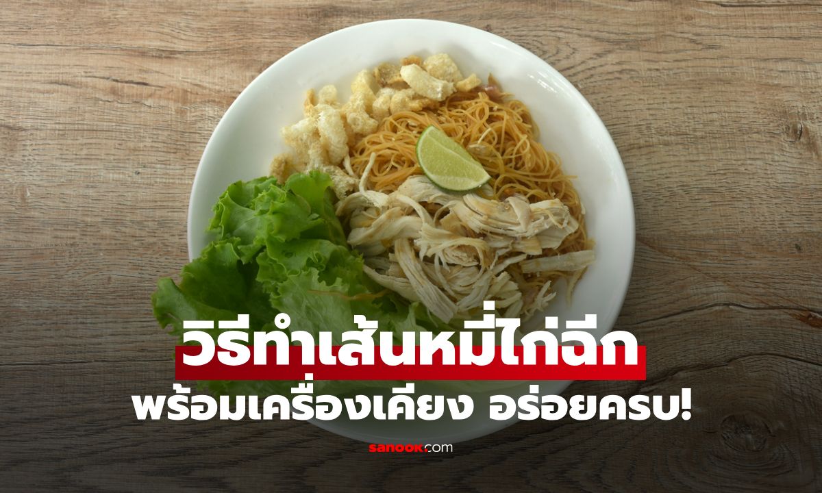 วิธีทำเส้นหมี่ไก่ฉีก พร้อมแคปหมูปรุงรสและเครื่องเคียงอร่อยครบ