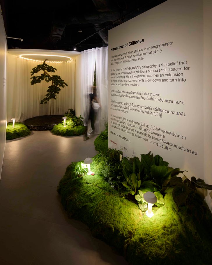 นิทรรศการครั้งนี้ถูกนำเสนอในรูปแบบ “The Living Exhibition” ที่ร้อยเรียงเรื่องราวผ่าน 5 สวนมหัศจรรย์อันเปี่ยมด้วยอารมณ์ความรู้สึก เริ่มต้นจากการปรับจังหวะชีวิตให้ช้าลงใน Garden of Stillness ก้าวเข้าสู่การสื่อสารกับธรรมชาติผ่านประสาทสัมผัสใน Garden of Connection และพบกับไฮไลต์สำคัญอย่าง Garden of Motion ที่สะท้อนสัจธรรมผ่านแสงเงาและการเคลื่อนไหวจากกลางวันสู่กลางคืน นอกจากนี้ยังมีการซ่อนกิมมิค Hidden Object หรือวัตถุปริศนาตามมุมต่างๆ ให้ผู้ชมได้ร่วมสนุกเหมือนการตามล่าขุมทรัพย์ (Treasure Hunt) เพื่อค้นหาความลับและเรื่องราวจากอดีตที่ซ่อนอยู่ในรายละเอียดเล็กๆ ของงานออกแบบ