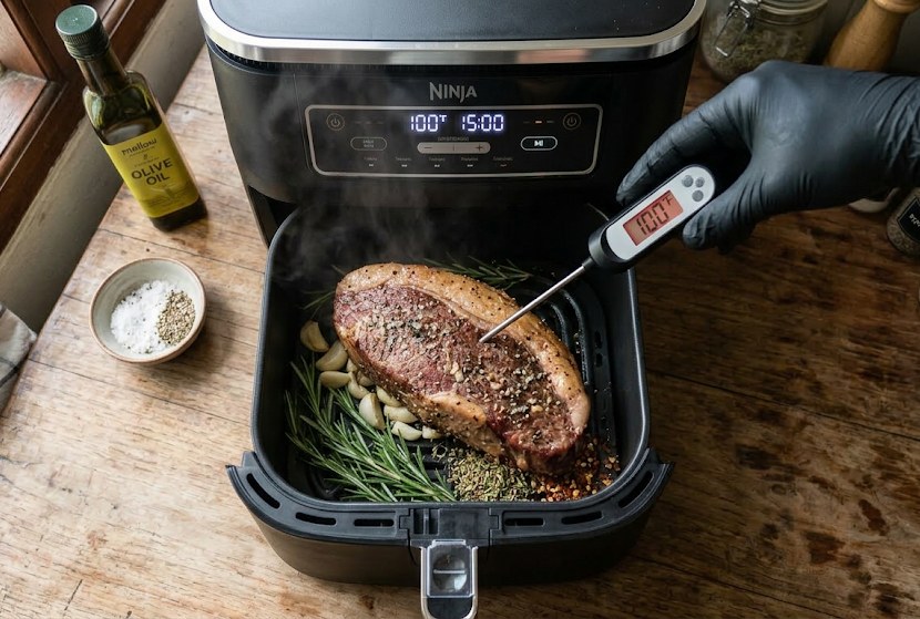 วิธีทำสเต็กเนื้อ Medium Rare ด้วยหม้ออบลมร้อน
