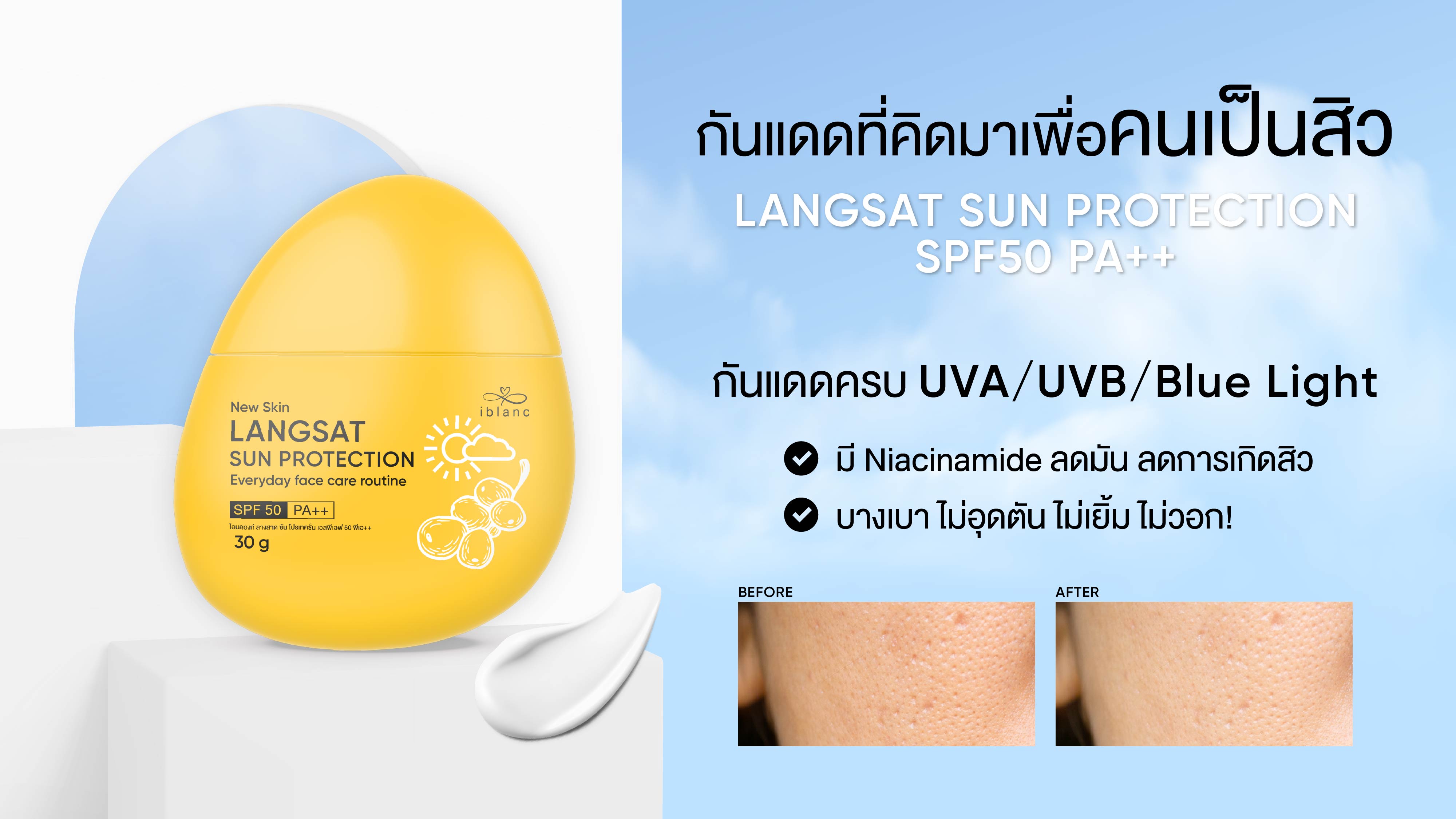 Q: ทำไมต้องเป็นกันแดด “iblanc Langsat Sun Protection SPF50 PA++”?