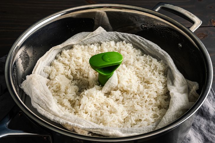 - แช่น้ำร้อน: ต้มน้ำให้เดือด เทให้ท่วมข้าวประมาณ 1 ข้อนิ้ว แช่ 10–15 นาที