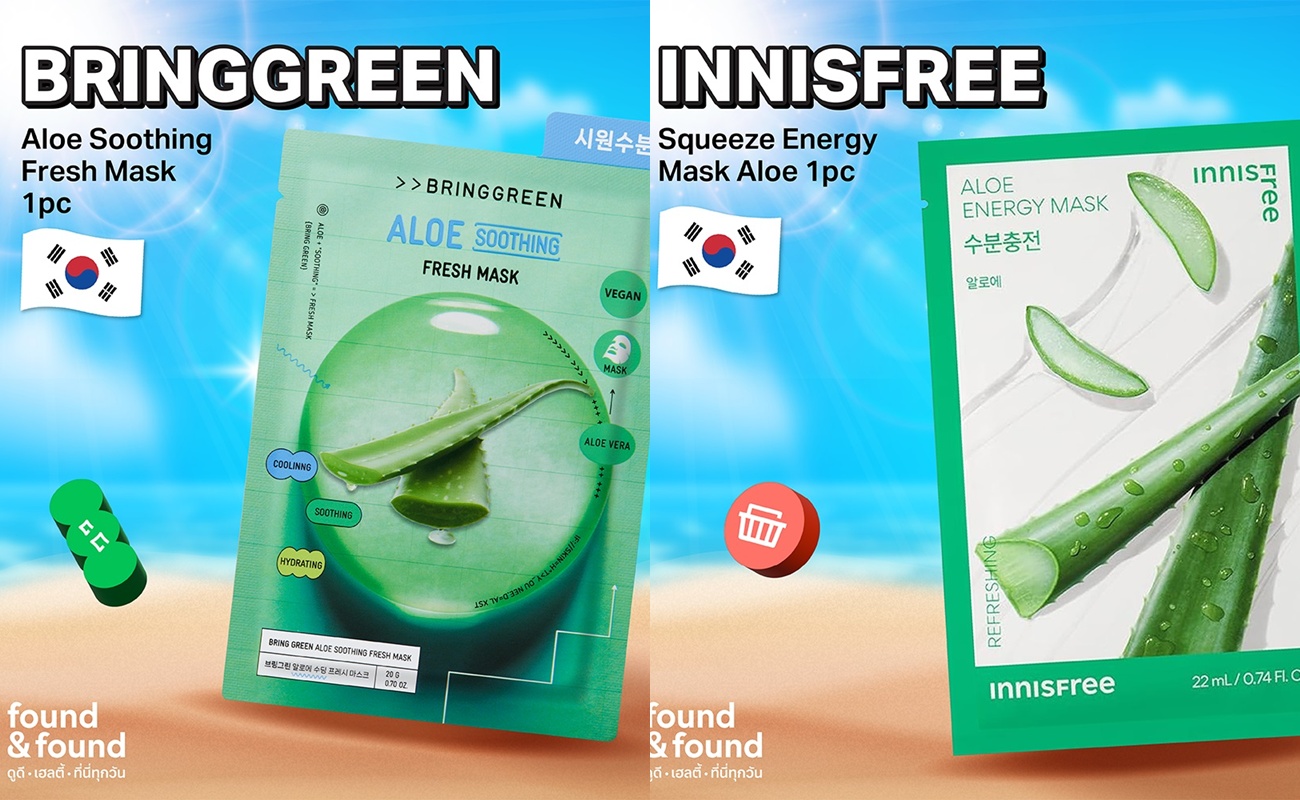 BRINGGREEN Aloe Soothing Fresh Mask แผ่นมาสก์หน้าที่อุดมไปด้วยสารสกัดจากว่านหาง จระเข้และใบมิ้นท์ป่า ช่วยเติมความชุ่มชื้นให้กับผิวที่ขาดน้ำ มอบความเย็นสดชื่นทันทีหลังใช้ และขอแนะนำอีกหนึ่งไอเทมน่าลอง Innisfree Squeeze Energy Mask Aloe แผ่นมาสก์วีแกนเข้มข้นพร้อมเอสเซนส์บำรุงสูตรอ่อนโยน ช่วยปลอบประโลมพร้อมมอบความผ่อนคลายและเติมความชุ่มชื้นให้ผิวหน้าที่อ่อนล้า