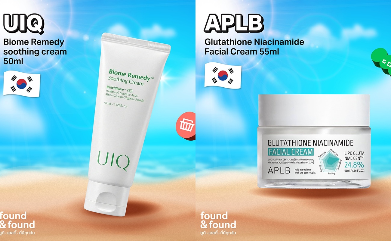 “UIQ Biome Re. soothing cream” ช่วยปลอบประโลมและเติมความชุ่มชื้นให้ผิวรู้สึกสบาย เหมาะสำหรับผิวแพ้ง่าย หรือผิวที่มีแนวโน้มระคายเคือง ช่วยดูแลผิวให้อ่อนนุ่มและสมดุลมากขึ้นและขอแนะนำอีกหนึ่งไอเทมควรมี “APLB GLUTATHIONE NIACINAMIDE FACIAL CREAM” ครีมบำรุงผิวที่ช่วยปรับสีผิวให้กระจ่างใส ลดเลือนฝ้ากระจุดด่างดำ ปลอบประโลมผิวและลดการระคายเคือง ช่วยเติมน้ำให้ผิวคงความชุ่มชื้นล้ำลึก ผิวแลดูฉ่ำน้ำและมีสุขภาพดี