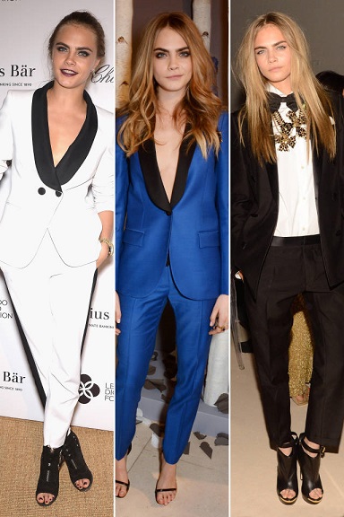 Model-of-the-moment อย่างสาวคาร่า นอกจากมีคิ้วหนาๆเป็น signature look แล้ว สไตล์ tomboy ของเธอยังเป็นสไตล์ประจำตัวเธออีกด้วย หลายต่อหลายครั้งที่เธอเลือกสวมชุดสูทเท่ๆแทนที่จะเป็นเดรสเกาะอกลูกไม้ นอกจากจะเด่นแล้วยังเหมาะกับลุคซนๆของเธอมากๆ จริงไหมคะ