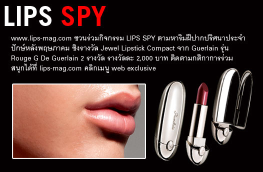 และเช่นเคยกับความพิเศษใน www.lips-mag.com คอลัมน์ Web Exclusive กับกิจกรรม LIPS Spy ตามหาริมฝีปากปริศนา ชิงรางวัลลิปสติกประจำปักษ์ และชมเบื้องหลังการถ่ายทำคอลัมน์เอ่ยปาก Behind The Rising Stars ถึง 4 เซตด้วยกัน จุใจขนาดนี้ พลาดไม่ได้แล้ว