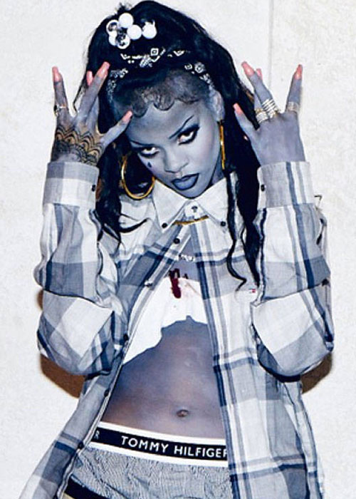 นี่เห็นนี่ไม่ใช่การปรับสีในภาพให้เป็นโทนสีน้ำเงินนะ แต่สาวริฮานน่าจัดผิวสีน้ำเงินด้วยตัวเองเลย! เปลี่ยนจาก Shy Girl เป็น Zombie Gangster ได้ชิคสุดๆจริงๆ