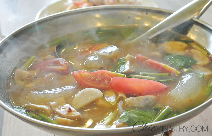อาหารจานแรกมาถึงแล้ว ต้มแซ่บเอ็นหมู ใช้เอ็นชิ้นใหญ่เคี่ยวจนนุ่มเสิร์ฟร้อนๆ ได้กลิ่นของเครื่องเทศแบบเต็มๆ แซ่บสมชื่อจริงๆครับ