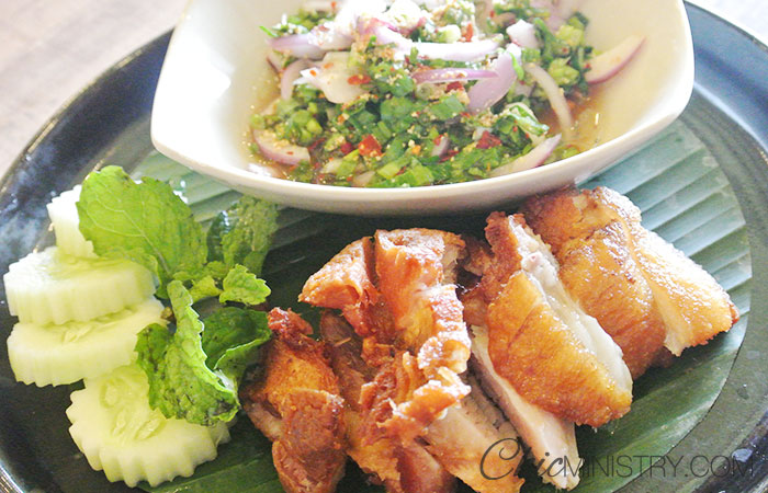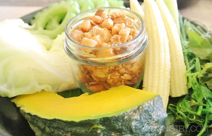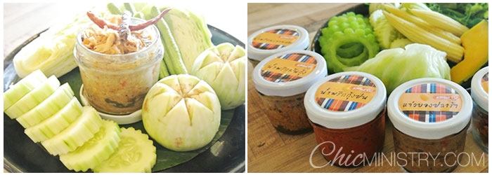 เมนูต่อไปขอบอกว่าชอบมากครับ เพราะเป็นน้ำพริกผัก 7 สไตล์ที่ทางร้านชูเป็นของขวัญของฝาก สั่งทานที่ร้านแล้วจะได้ทั้งกระปุก ทานหมดเอากระปุกกลับบ้านไปได้เลย ผมเลือกแจ่วบองปลาร้าและน้ำพริกกากหมูซึ่งทางร้านแนะนำมาลอง เสิร์ฟคู่กับผักสด เข้ากั๊นเข้ากัน นอกจากสองอย่างนี้ทางร้านยังมีน้ำพริกน้ำพริกมะขามสด น้ำพริกกากหมู น้ำพริกมันกุ้ง น้ำพริกหนุ่ม และน้ำพริกกุ้งป่น เลือกอร่อยได้เลยครับ