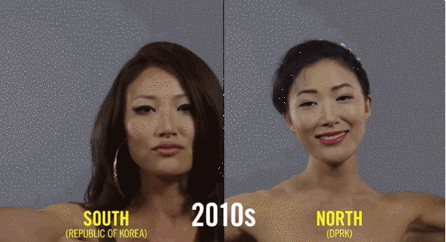 ในปี 1950 หลังจากสงครามเกาหลี สองประเทศนี้ถูกแยก ความสวยของผู้หญิงทั้งสองประเทศจึงโดนแบ่งแยก ผู้หญิงเกาหลีใต้จะเน้นความสวยแบบตะวันตก ในขณะที่เกาหลีเหนือจะอิงตามการเมืองของประเทศ