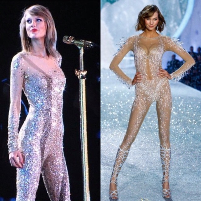 หนึ่งในชุดที่เธอนำมาใส่ในคอนเสิร์ตนั้นช่างดูเหมือนบอดี้สูทที่เพื่อนซี้ของเธออย่าง Karlie Kloss ใส่เดินแบบในงาน Victoria’s Secret Fashion Show 2013 จึงมีบรรดาแฟนคลับของเธอนำภาพมาเปรียบเทียบกันให้ดู