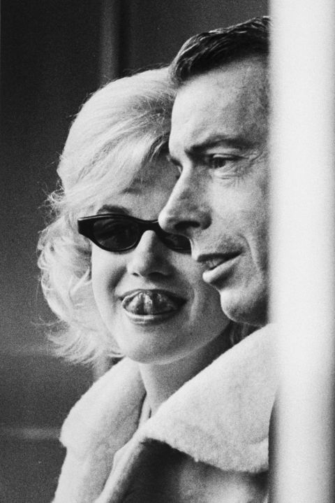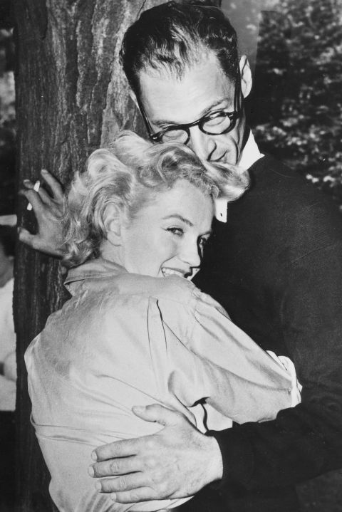 โอบกอดกันกับสามีคนแรก Arthur Miller ในปี 1956