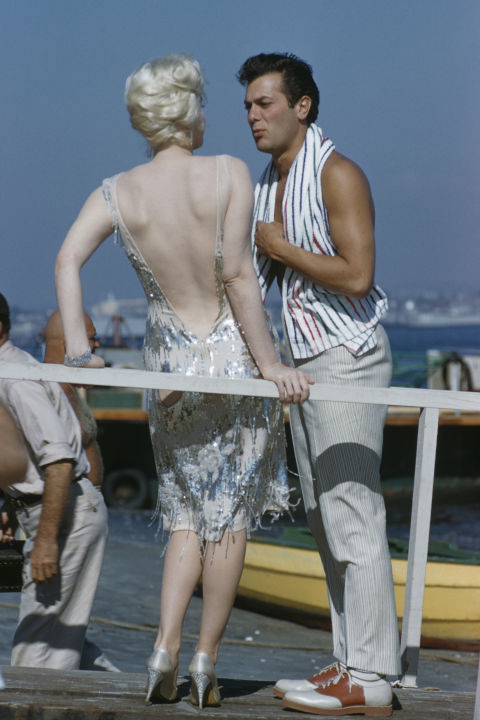 กำลังถ่ายละครกับ Tony Curtis ในปี 1958