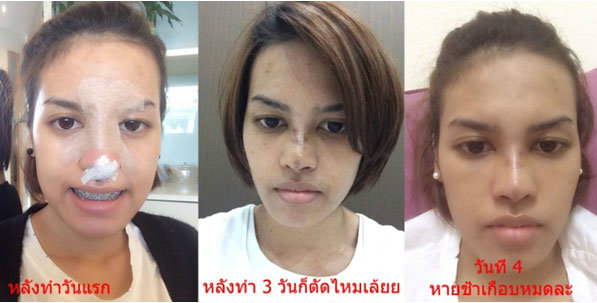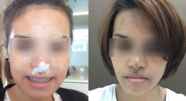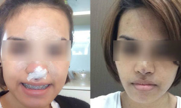 ก่อนแก้ไขจมูกจากที่แข็งและเบี้ยว - หลังแก้จมูก 2 อาทิตย์