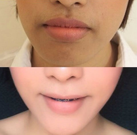 มาในส่วนของรูปหน้าบ้าง จุดพีคเลยจริงๆ หน้าเหลี่ยมม๊ากกก คางก็ยื่นออกมา นึกว่าสไลด์เดอร์ ต้องการความเป็นวีเชฟแบบด่วนๆ จึงรีบไปปรึกษาคุณหมอ คุณหมอบอกว่าหน้าดูแข็ง เศร้า มุมปากตก รูปหน้าขากรรไกรล่างโตกว่าปกติ ทำให้คางยื่น รูปหน้าตอบ ทำให้ดูเหมือนผู้ชาย ดูหน้าไม่หวาน โหงวเฮ้งไม่ดี คุณหมอเลยแนะนำให้ฉีด Filler+Botox เพื่อปรับรูปหน้าให้ดูสวยหวานมากขึ้น โดยการฉีดปากให้เป็นปากกระจับ และฉีดแก้มเพื่อให้ดูหน้าไม่ตอบและดูเด็กขึ้น และฉีดหน้าผากเพื่อเป็นการเสริมโหงวเฮ้ง เพื่อให้ดูสวยหวานมากขึ้น โดยที่ไม่ต้องทำการผ่าตัดค่ะ