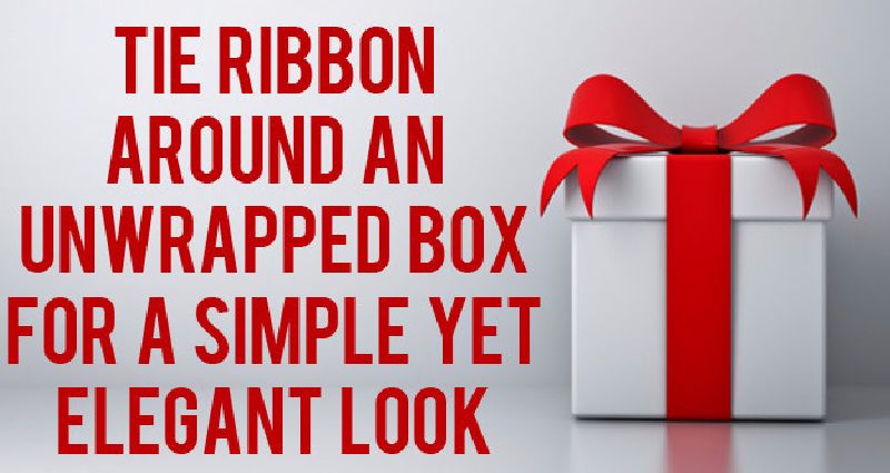 ส่วนพวกที่บ้านไม่มีริบบิ้นหรือโบว์แนะนำให้คุณวาดลงไปเองบนกล่องของขวัญไม่เช่นนั้นลองสร้างสรรค์เอาเองด้วยใช้เทปกระดาษหรือแมกกาซีนมาทำสิ