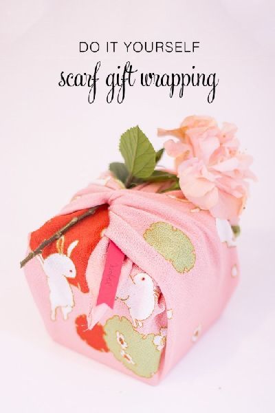 วิธีต่อมาคือใช้ผ้าพันคอห่อแทนกระดาษซึ่งผ้าผืนนั้นก็จะกลายเป็นของขวัญให้คนรับอีกชิ้น