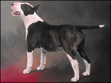 บูลเทอร์เรียเป็นสุนัขที่มีลําตัวและโครงสร้างที่แข็งแรง เต็มไปด้วยกล้ามเนื้อ มีส่วนสัดที่รับกันอย่างพอดี มีลักษณะปราดเปรียว คล่องแคล่วว่องไว จิตใจเต็มไปด้วยความกระตือรือร้น มีไหวพริบและความฉลาดเป็นเลิศ ทั้งตัวเต็มไปด้วยความรู้สึกอย่างแรงกล้า แต่อีกส่วนก็มีจิตใจที่อ่อนหวาน อ่อนโยน ไม่ดื้อดึงกับระเบียบวินัย มาตราฐานสายพันธุ์ ศีรษะ : ต้องยาวมีความแข็งแรง ใบหน้าเต็มมองดูคล้ายไข่ ระยะจากปลายจมูกไปยังลูกตาเห็นได้ชัดเจนกว่า ระยะจากตาไปยังส่วนบนของกะโหลก กรามบนควรจะลึกและมองเห็นขอบเขตได้ชัดเจน หู : ควรจะเล็ก บางและมีตำแหน่งใกล้กัน ตั้งตรงอยู่ตลอดเวลา ตา : จมลึกอย่างพอเหมาะ สีเข้ม เป็นประกาย ตาเป็นรูปสามเหลี่ยม ข้อด้อยของสุนัขพันธุ์นี้คือมีตาสีฟ้า จมูก : ควรเป็นสีดำ โค้งลงไปสู่ปลาย คอ : เต็มไปด้วยกล้ามเนื้อ ยาวและเป็นสันโค้ง ผิวเรียบไม่หย่อนยาน อก : มองจากด้านหน้าอกต้องกว้าง มองจากด้านข้างอกลึก บริเวณอกใกล้พื้นกว่าบริเวณท้อง ลำตัว : หลังต้องสั้นและแข็งแรง หัวไหล่ต้องกว้างและเรียบ มีความลาดเอียงไปด้านหลังอย่างเด่นชัด ขา : มีกระดูดใหญ่ ไม่มีจุดที่น่าเกลียด เหยียดตรงได้รูป ข้อศอกทั้งสองข้างกางออก ข้อเท้าสั้นและตั้งตรง เท้า : กลมและกระชับ มีขอบเขตชัดเจนเหมือนเท้าแมว หาง : สั้น ห้อยต่ำ เรียว บริเวณโคนหางต้องหนาและเรียวแหลมไปยังปลาย ขน : สั้น เรียบ เมื่อลูบจะสาก ขนเป็นมัน หนังต้องตึง สี : ปรกติเป็นสีขาว มีสีอื่นบนใบหน้าเป็นที่ยอมรับได้ แต่ถ้ามีสีอื่นบนลำตัวจะกลายเป็นข้อด้อย การเดิน : มีอิสระในการก้าวย่าง ขาหน้าและขาหลังเคลื่อนไหวขนานกัน ต้องหนักแน่น กระฉับกระเฉง ข้อด้อย : ใบหน้าที่โค้งโก่งมาก ตาสีฟ้า มีสีขนสีอื่นมากกว่าสีขาว