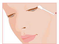 ควรใช้คอตตอนบัดชุบ Eye Make-up Remover จนชุ่ม แล้วเช็ดไปตามเส้นขอบตาที่เขียนไว้