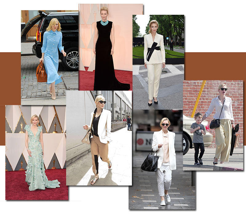 เคท บลานเชตต์ คือนักแสดงสาวที่ติดโผคนดังแต่งตัวดีทุกโอกาสไม่ว่าจะบนพรมแดงงานเล็กงานใหญ่หรือแม้แต่ลุคสตรีทในวันสบายๆ ส่วนตัวแล้วเคทเป็นผู้หญิงที่รักความเรียบง่ายและความสบาย แต่พออยากหาอะไรที่สวมง่ายๆ มันก็มักจะออกมาในแนวเรียบๆ สีโทนขาว-ดำ และรองเท้าผ้าใบดีๆ สักคู่ ซึ่งผลที่ได้ก็ออกมาในสไตล์มาสคูลีน แต่ที่สิ่งที่ทำให้เธอโดดเด่นกว่าคนอื่นก็คือความไม่พยายามจะคูลหรือพยายามจะเท่