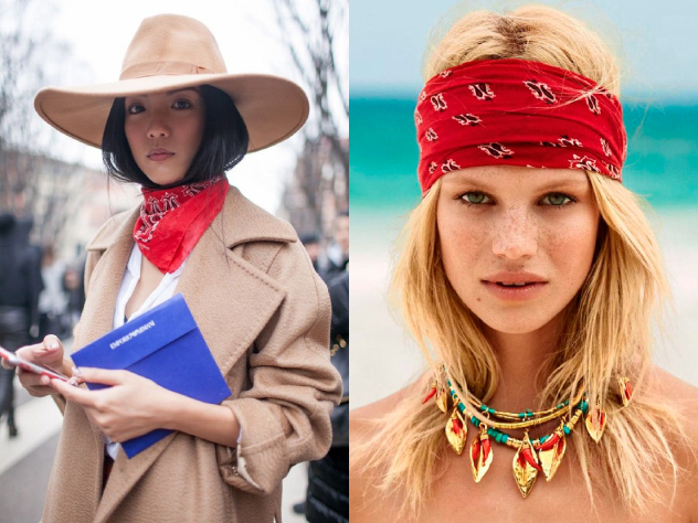 ผ้าเช็ดหน้า Bandana ได้กลับมาอย่างเป็นทางการแล้วค่ะ! ผ้าเช็ดหน้าพิมพ์ลวดลาย Paisley ได้กลับมาฮิตฮอตอีกครั้ง เป็นแอคเซสเซอร์รี่สุดเก๋อีกชิ้นหนึงที่สามารถนำมาพันคอ โพกหัว ผูกผมหรือจะแปลกแหวกแนวก็สามารถนำมาพันแขนหรือข้อเท้าก็เท่ไปอีก เรียกว่าผืนเดียวเอาอยู่แถมราคาไม่แพงอีกด้วย ChicMinistry เลยรวบรวมการแมตช์ Bandana มาให้ดูกันว่าจะคูลแค่ไหน
