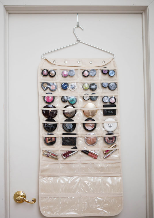 "ช่องเก็บของอเนกประสงค์" ที่มีรูเยอะๆ วางขายตามร้านทั่วไป ก็สามารถเก็บเครื่องสำอางได้ นำมาแขวนตามประตู หรือข้างตู้ ก็เป็นการประหยัดพื้นที่ได้ดีมากๆ เลยค่ะ