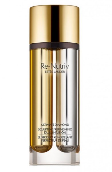 Estee Lauder Re-Nutriv Ultimate Diamond Sculpting/Refinishing Dual Infusion สูตรอานุภาพสูงสุด 2 ชนิด อุดมด้วยคุณประโยชน์เข้มข้น ประสิทธิภาพที่อยู่ภายในทำงานประสานและส่งเสริมกันเพื่อผลลัพธ์อันเป็นเอกลักษณ์ มอบผิวเนียนนวล ดูเปล่งปลั่งสดใส แลดูกระชับกว่าเดิม สารสกัดบริสุทธิ์เข้มข้นจากเแบล็คทรัฟเฟิลไดมอนด์ในหลอดสีทอง ได้รับการเจียระไนขึ้นด้วยกระบวนการทางวิทยาศาตร์และเทคโนโลยีล้ำสมัย เพื่อเสริมการทำงานของผิว เพื่อธำรงและฟื้นบำรุงให้ได้ผิวที่ดูกระชับ ในขณะที่ส่วนผสมเปี่ยมพลังในหลอดสีแพลทินัมจะรวมสมรรถนะของสารสกัดเข้มข้นที่ช่วยฟื้นบำรุงผิวหลากชนิดเพื่อมอบผิวหน้าที่ดูเนียนเรียบ และเปล่งประกายตามธรรมชาติ ขนาด 25 มล. ราคา 17,000 บาท